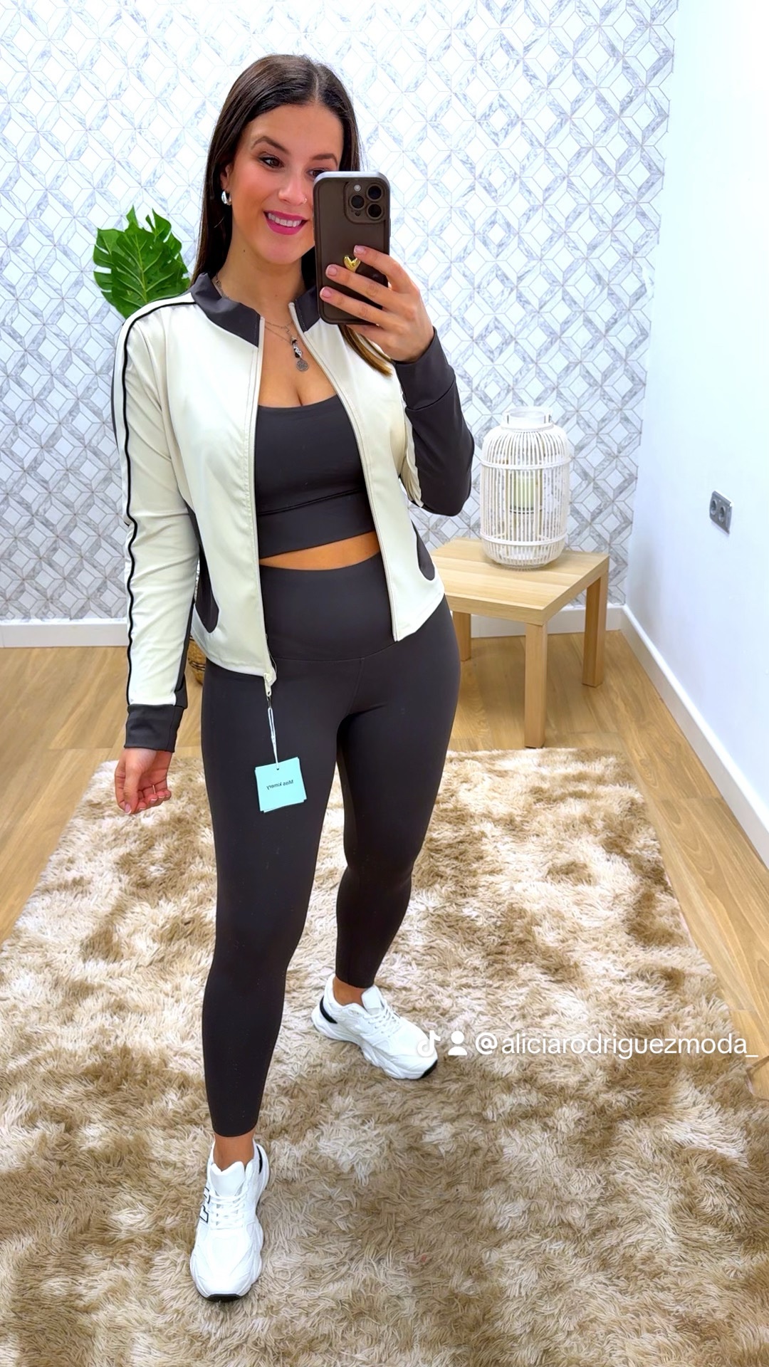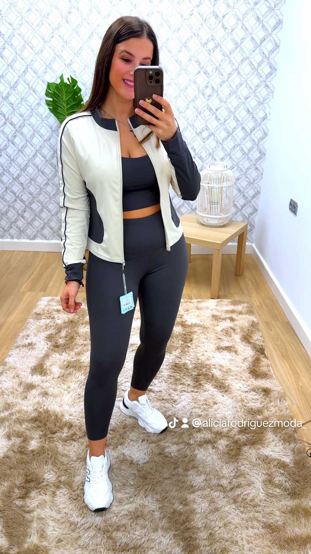 CONJUNTO DE TRES PIEZAS (Legging, top con cascos y chaqueta)